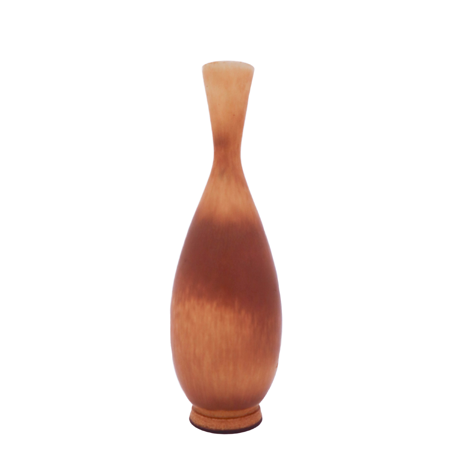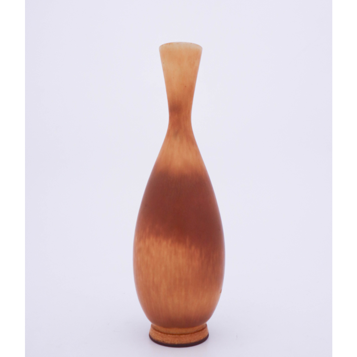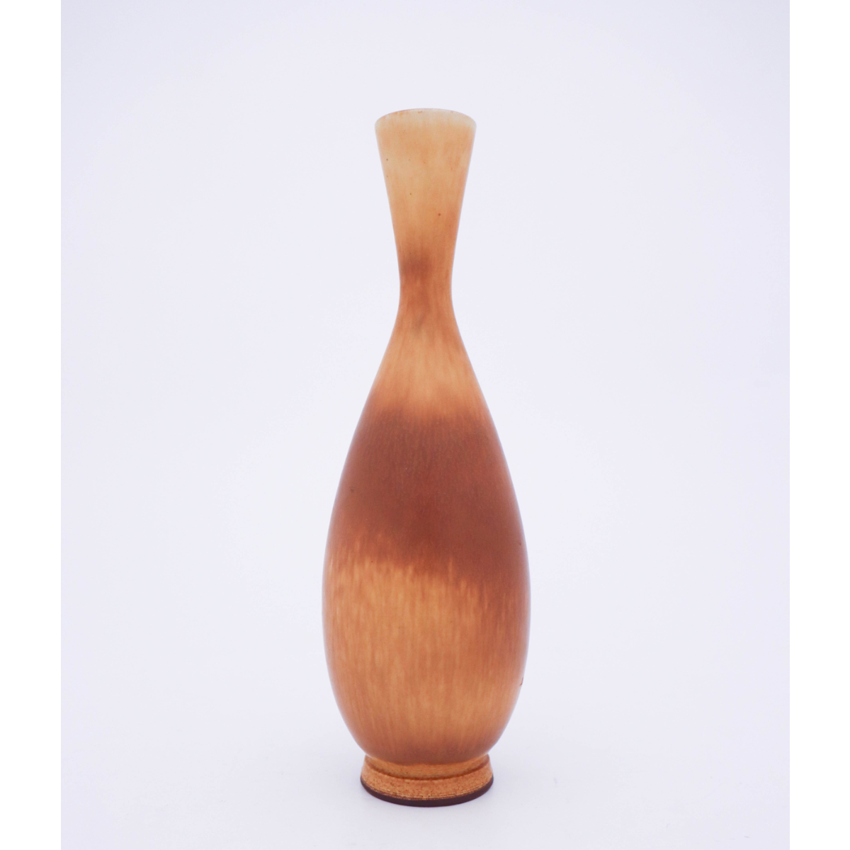 A brown vase designed by Berndt Friberg at Gustavsberg in Stockholm, the vase is 25 cm high and 7,5 cm in diameter. It has a beautiful Brown har fur glaze and marked as on picture. This vase was produced in 1962, it´s in mint condition!