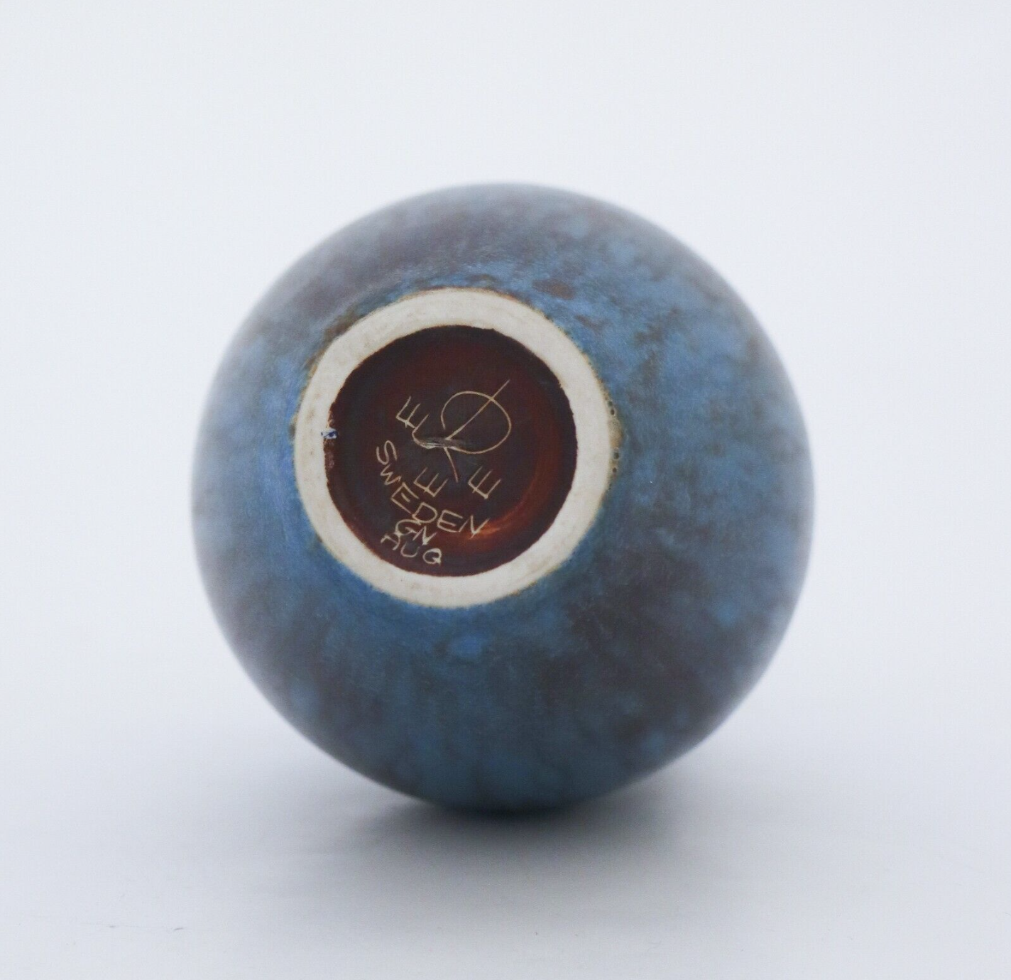 A blue vase designed by Gunnar Nylund at Rörstrand, it´s 17,5 cm (7″) high. It´s in very good condition except from a bit sharp edge at the top, that is probably why it is marked as 2nd quality.