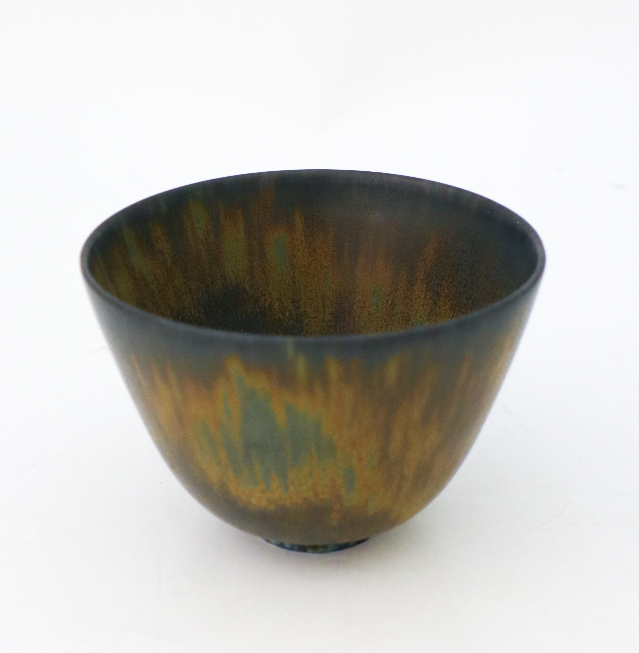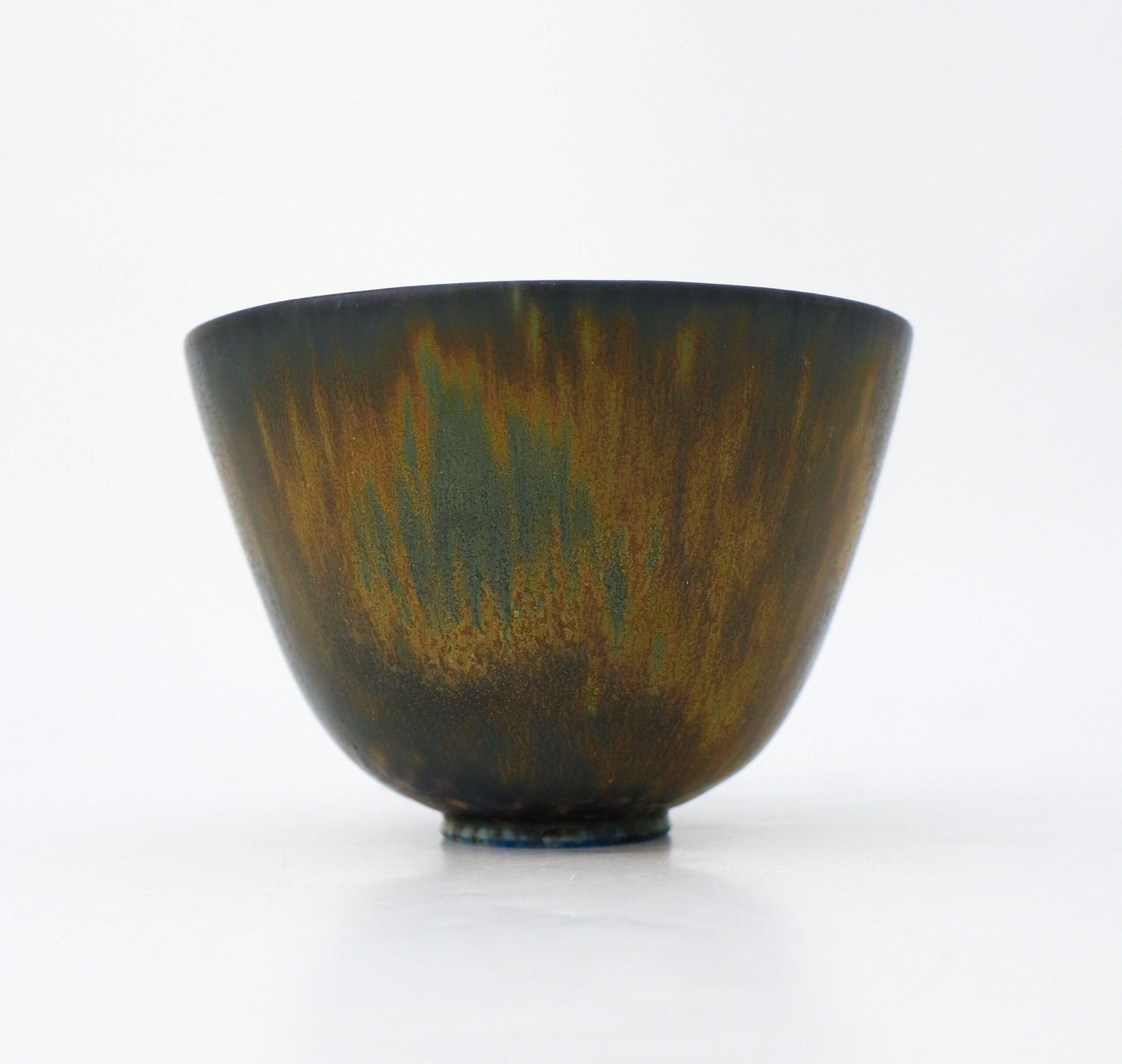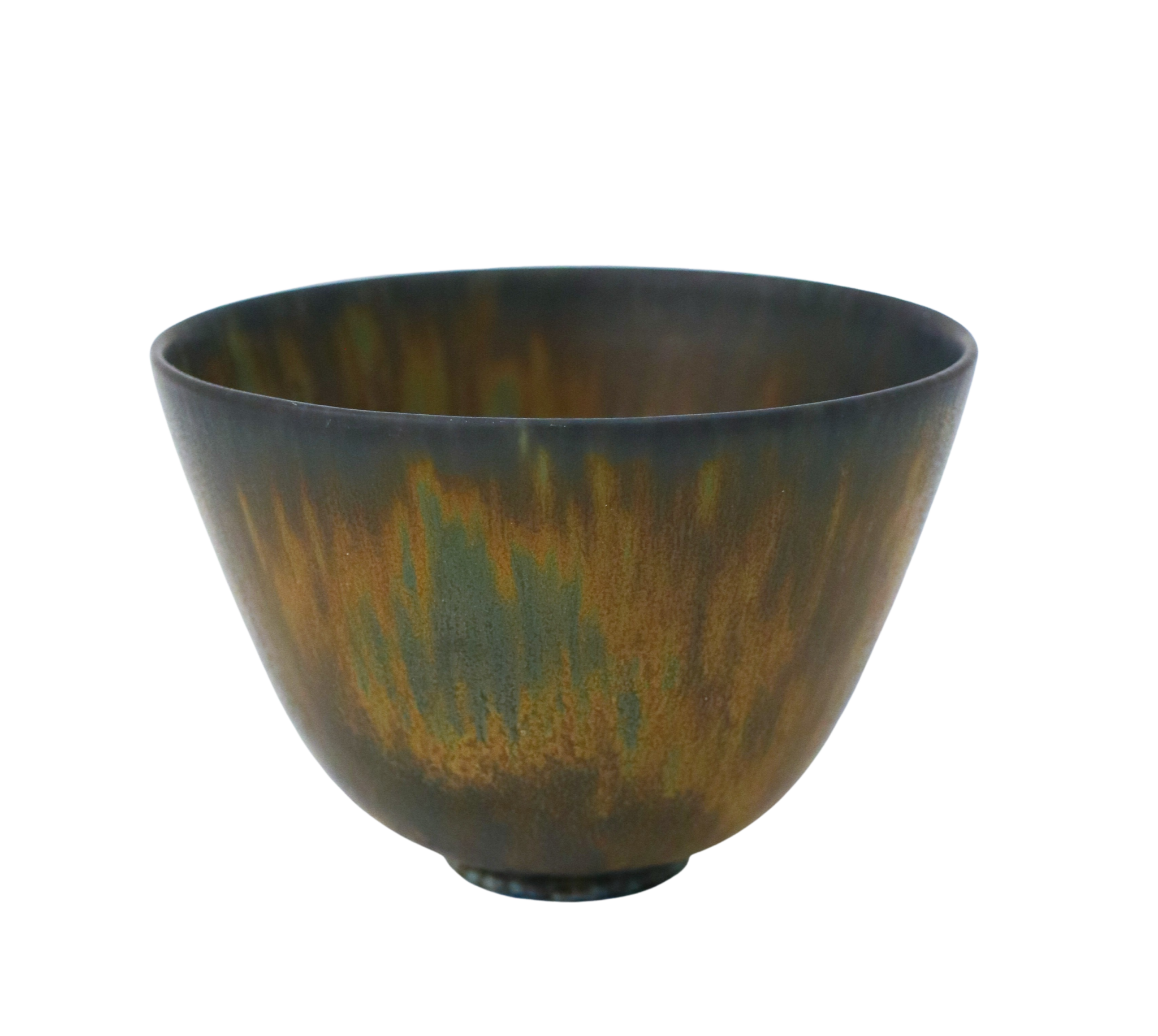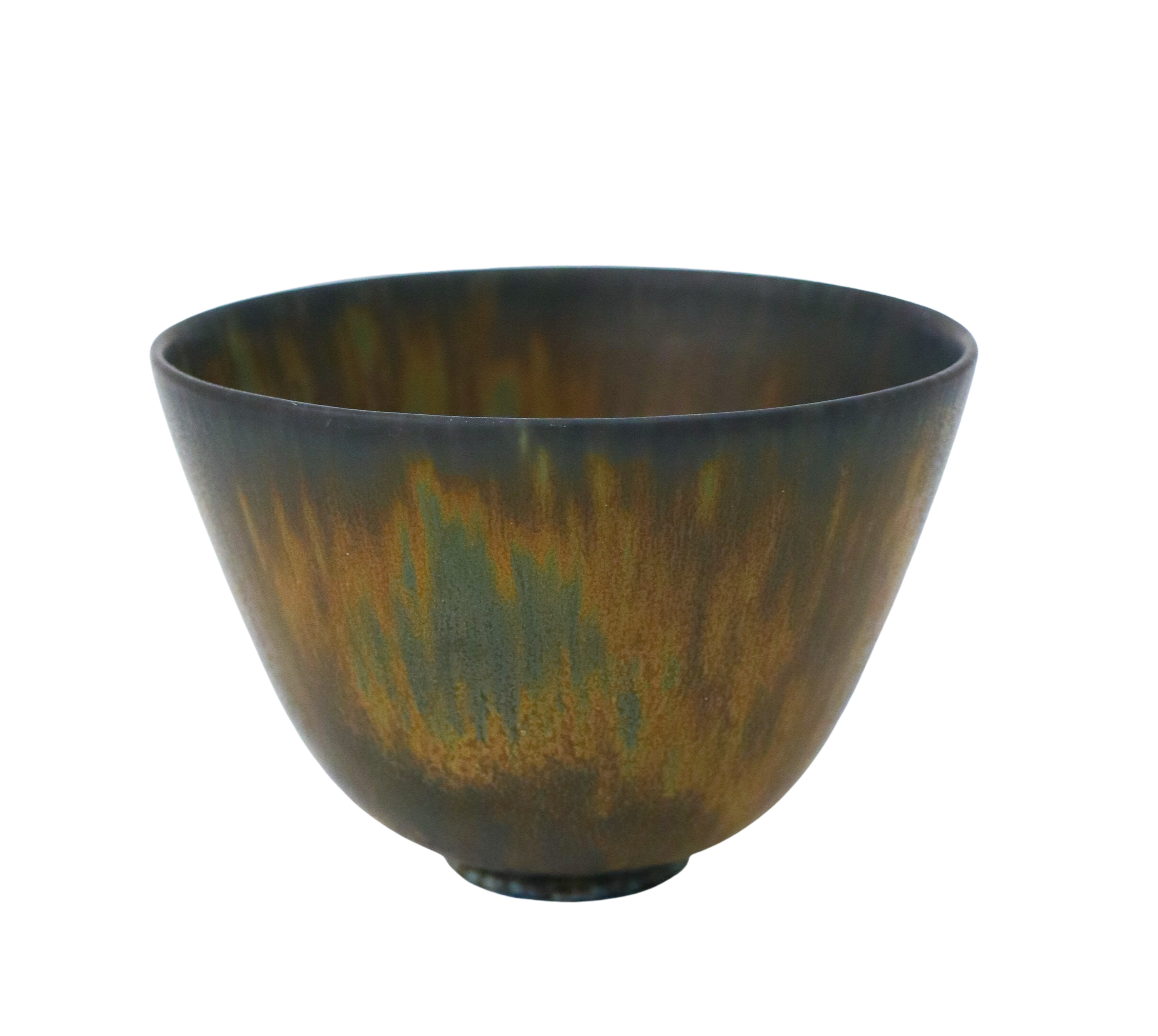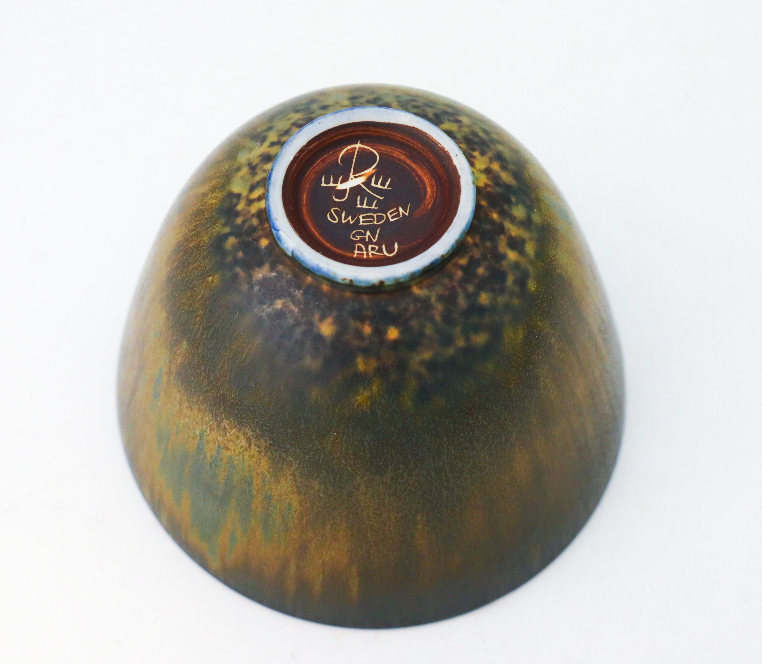 A green and brown bowl designed by Gunnar Nylund at Rörstrand, the bowl is 9 cm (3.6″) high and 12,5 cm (5″) in diameter. It has a lovely glaze, it´s in excellent condition except from some minor marks and scratches and marked as 2nd quality.