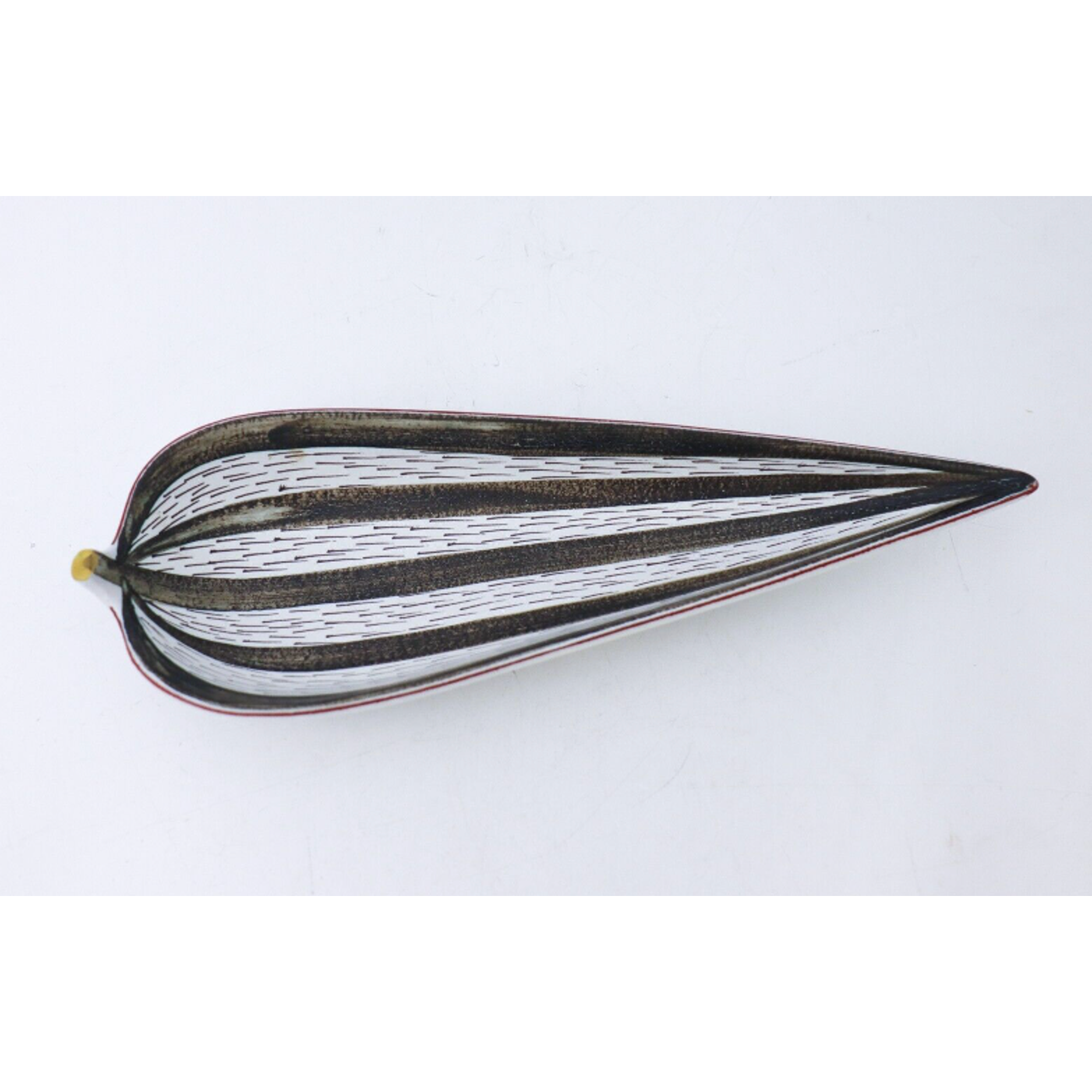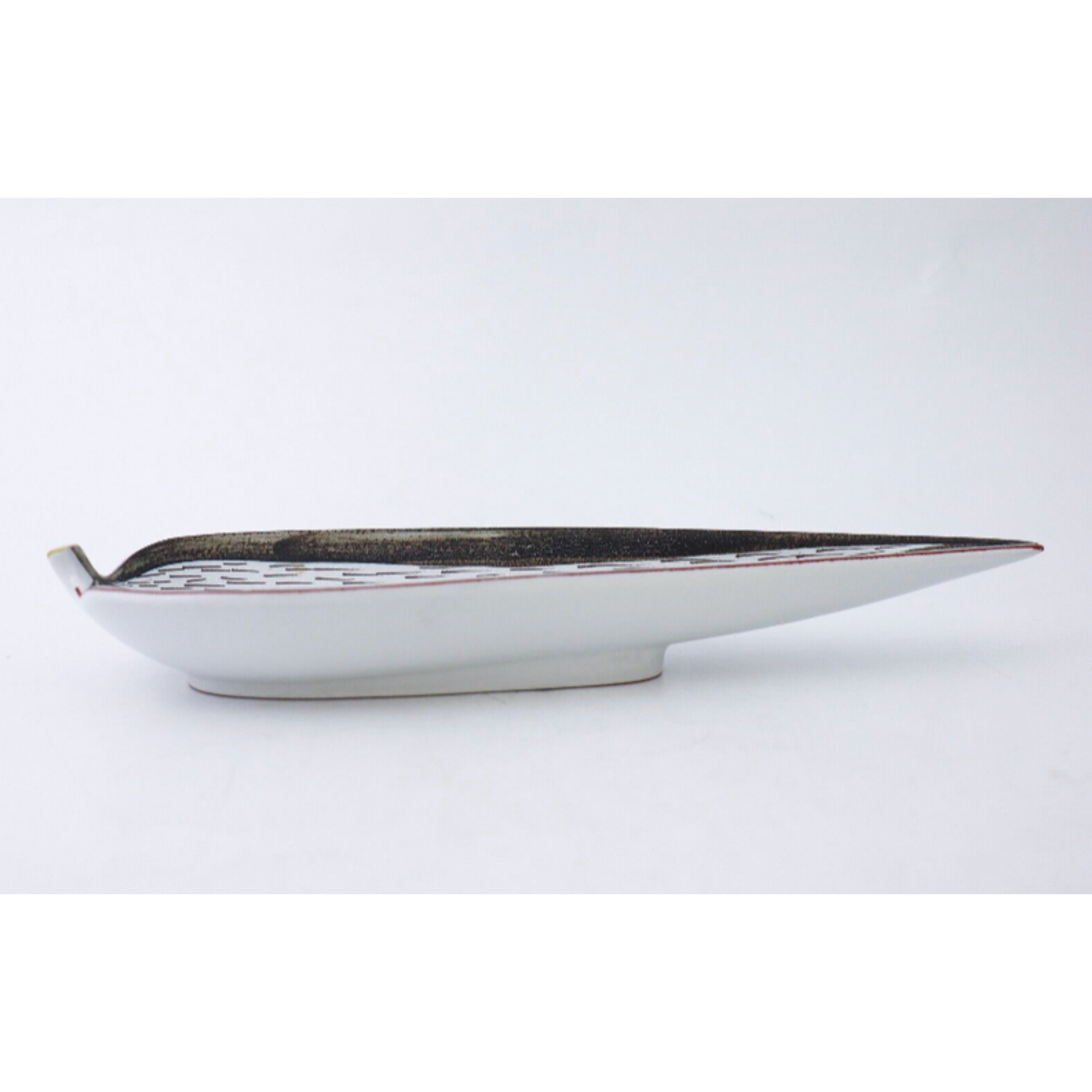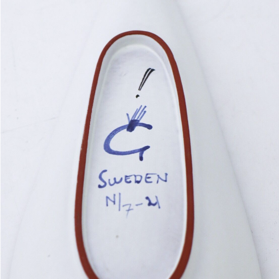 A serving dish in faience designed by Stig Lindberg at Gustavsbergs Studio in Stockholm, it is 31.5 x 10.5 cm (12.6″ x 4.2″) in diameter. It´s in excellent condition except from a minor color loss in the black color in the front, it is not a chip it is just a small mark in the glaze from the production.