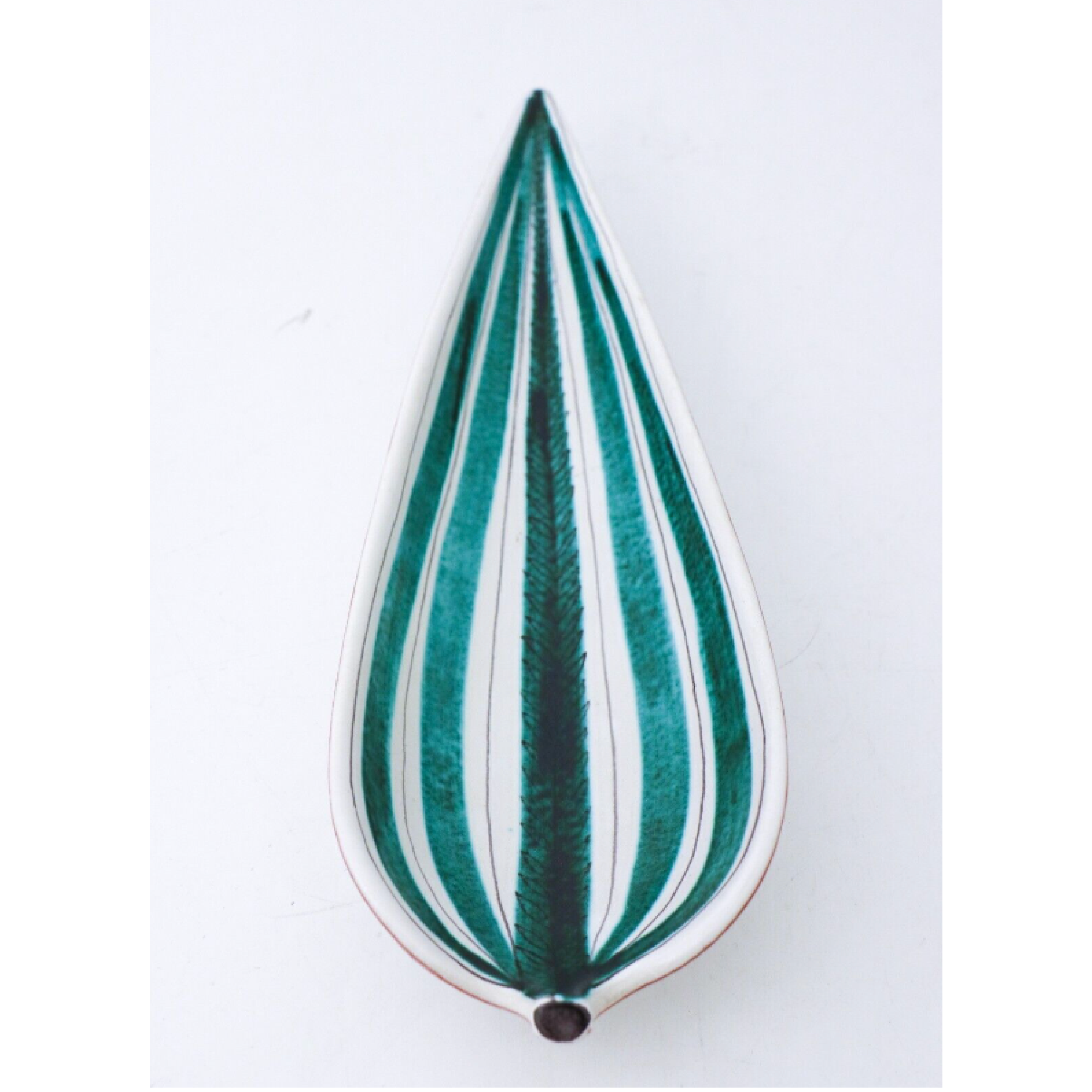 In 1942, Gustavsberg opened the exhibition “Faience painted in spring” in Stockholm. The press screening of this exhibition was attended by a lot of journalists because an invitation card made of faience had been sent out, which can perhaps be considered one of the first ingenious PR strategies in the industry. These faiences became incredibly popular and have since become somewhat of a hallmark of Stig Lindberg’s design. The forms were created by Stig Lindberg and Gustavsberg had a number of faience painters who painted these characteristic patterns.
