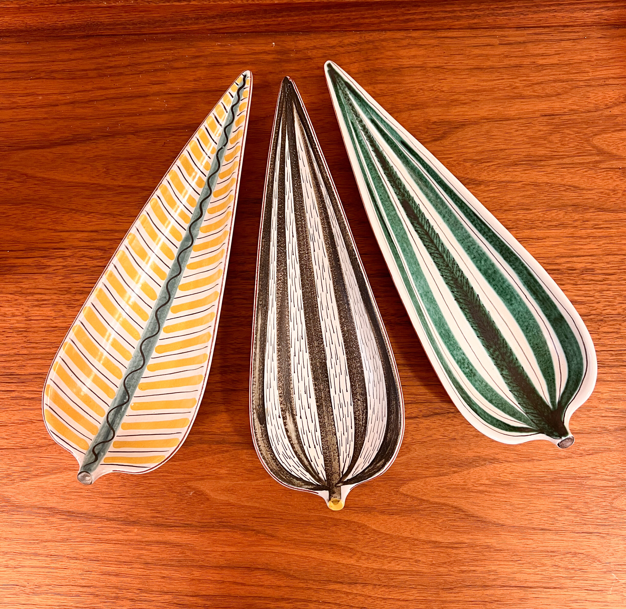 In 1942, Gustavsberg opened the exhibition “Faience painted in spring” in Stockholm. The press screening of this exhibition was attended by a lot of journalists because an invitation card made of faience had been sent out, which can perhaps be considered one of the first ingenious PR strategies in the industry. These faiences became incredibly popular and have since become somewhat of a hallmark of Stig Lindberg’s design. The forms were created by Stig Lindberg and Gustavsberg had a number of faience painters who painted these characteristic patterns.