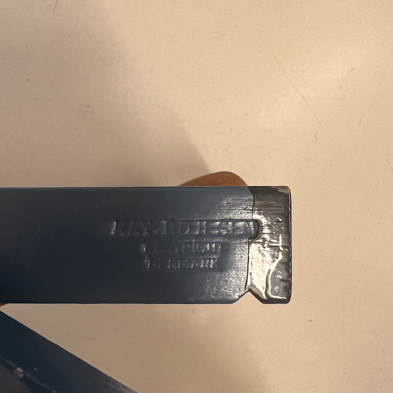 A lovely Danish soldier with rifle designed by Kaj Bojesen in Denmark, designed in the early 1940s. The soldier is 21.5 cm (8.6″) high and in excellent condition except from a glued crack on the arm that holds the rifle, see photos. It also has some slight fading in the color on the back. It is marked Kay Bojesen, copyright Denmark on the inside of its leg.